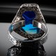 优雅手工戒指,镶嵌天然蓝琥珀,造型独特且富艺术感。采用实心925纯银镶嵌,完美展现波罗的海琥珀的深邃与瑰丽。