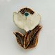 叶片呈现琥珀色,花瓣部分则涂上了一层沉稳、带点绿意的白色结晶釉药,经过窑烧熔化反应后,呈现出层次丰富元白色调。