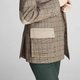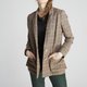 格纹外套带有浓厚英伦气息,口袋上的粗针缝线和贴布拼接让西装外套更显休闲,外套内的背带增添穿搭趣味