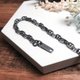 链圈间焊上横杆的设计源自于海锚链,在充满海洋气息的造型中加入俐落的棱角线条,运用手工技法将纯银染上复古色泽,创造沉稳深邃的独特手链。