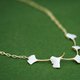 这款简约的项链由五片银杏叶巧妙串联而成,搭配一条链子。