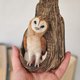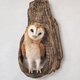 - 空心树上的谷仓猫头鹰,墙壁装饰。猫头鹰采用干针毡技术将羊毛毡制成。木件背面有一个环,可以将作品挂在墙上。送给博物学家、野生动物爱好者的礼物