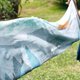 先沾湿→再轻拧到不滴水→甩动后即瞬间冰凉