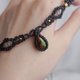 蜡线手工编织颈圈,主石为蛋白石,配石为拉长石