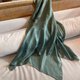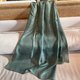 这条“碧潭幽光”丝巾,捕捉了山间深潭那份清澈而幽深的宁静。它将潭水在光影下呈现出的丰富墨绿与碧绿层次,以及丝绸本身泛出的微光,透过精湛的移印技术,永恒地印染于轻柔的蚕丝之上。每一道褶皱都仿佛是水波的涟漪,在光线流转间,变幻出迷人的深浅光泽,如同深夜静谧的潭水,映照着月光。
