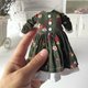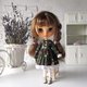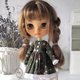 Blythe 娃娃的深绿色花卉印花洋装。布莱斯长袖连身裙。布莱斯服装