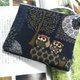 深蓝日系猫头鹰双拉链零钱包 卡片包 收纳包