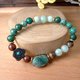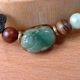 材质:褐皮缅甸玉+黑檀木+绿松石+紫檀8mm+缅甸玉10.8mm+绿松石8mm+木化玉8mm+黄铜