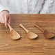 The surface of the spoon is carefully shaved without any thickness, and the slope of the dent is firmly attached, and the tip is slightly wider so it is easy to take even with juicy dishes. The traces carved by hand are also used, which makes it more fun.