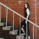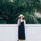 黑色细肩带开岔连身裙