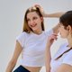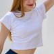 合身短版上衣 / 短袖设计 / 罗纹棉质布料 / 白色上衣搭配彩色印花