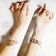 巧思以玛瑙家族中另一位大明星 -**盐源玛瑙**,雕**花(富贵)、旗袍(旗开得胜)、贝(招财)**妆点链身,蕴含多宝钏(**所愿皆成**)的吉祥寓意。