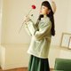 立领可算是秋冬必备,没有高领的束缚感,也不会感到脖子凉凉的,最重要的是,好搭配外套,就算不戴围巾也可以美美出门啦~领口的杏色撞色更是打造不一样的视觉感,更加符合复古文艺的感觉,腰间两个撞色腰袢,刚刚好的贴合在腰间,腰部尺寸比正常连衣裙的尺寸大了那么一点,如果小仙女们觉得有点我们订的位置有点紧了,可以自己稍稍松一点点哟~