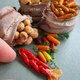 Doll miniature set of vegetables in bags for playing in a dollhouse.