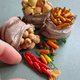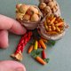 - Doll miniature set of vegetables in bags for playing in a dollhouse. The miniature is made on a scale of 1:12. All parts are fixed with glue. The set includes 3 bags of vegetables, a ribbon with red pepper and separate vegetables for decoration Polymer plastic, acrylic paints, acrylic varnish and cardboard are used as materials for manufacturing.