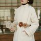 - 新中式立領+一粒花花扣 拉長頸部線條,擋風保暖的效果 版型寬松,舒適不拘束,可束腰搭配花花腰帶 秋冬內搭「襯衫」「高領」都可