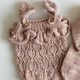 - Bodysuit with ruffles for a newborn girl. Props for a newborn photographer. Knitted from hand-dyed yarn. Outfit color - pink and beige with pink dots Check out my selection of newborn photography props. Here you will find newborn baby bonnets, cute handmade outfits, and tiny stuffed toys to create a unique first photoshoot.