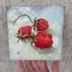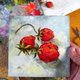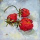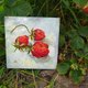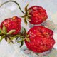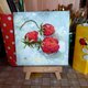 - Strawberry painting is painted with oil paints on thick cardboard. The still life with three berries has a size of 6 x 6 inches or 15 x 15 cm. The painting with three strawberries is sold unframed.