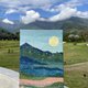 此系列作品运用线条及色块描绘出层层堆叠的山峦,画刀创造出山脉及岩层的立体及力量感,交杂的长条色块象征阳光洒落的状态,向阳与背阳面孕育出不同的山林。自在挥洒的颜料代表着光线散状的光芒,照亮树梢,穿过森林,亲吻着大山中的一草一木。