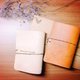 - 皮革封面的“笔记本”真是太美了!上面想要的短语也可以自己决定! 送给喜欢人,打上自己或对方的名字,不论假日约会、随身带着本子记下脑海中的想像, 让旅行规划、烘焙笔记、宠物的成长纪录都变成专属收藏。