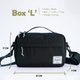 这款“Box L”斜背包是我们热销的“Box m”斜背包的进化版。此款式最特别之处在于包盖可近180度展开,大大增加收纳空间,同时让您更方便地取放物品。此外,包包也添加了提把设计,方便随手拿取。