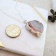 Beautiful necklaces made of 30x25 mm Half Moon-Shaped Raw Stone Pendant. The stone is a little heavy and one of the two will be randomly sent out. This stone has a gorgeous fault plane.