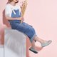 独家设计皮革饰片(法文单字、裸色翅膀),鞋面可以自由换扣。