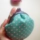 表布 蓝绿图案、里布 彩色水玉、口金 亮蓝、绒绳 米。