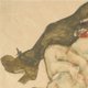 这幅水粉画展示了成熟的裸体女性感到幻灭,也许还感到疲惫,躺在扭曲的娃娃上。娃娃的表情不知道发生了什么事:它的脸庞像个木偶。