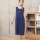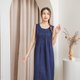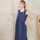 100% 亚麻 厚实不透肤 压褶设计 侧边口袋 颜色:海军蓝 均码 胸围:38" 袖长 23.5" 全长:42" 下摆宽:52" 模特儿身高 165 厘米,胸围 32"、腰围 24"、臀围 35"