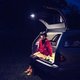 蹑手蹑脚铺好床,偷偷用携带式音响在车里小声地放音乐来听!