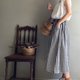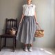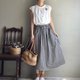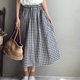 小棋盘/1cm黑白格子双层棉纱口袋中长裙100%棉