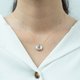 这款项链运用了象嵌工艺精心打造。将贵金属镶嵌于白蝶贝上,描绘出花的图案。