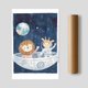 《太空冒险日记 Space Buddies》出自插画家 Purple 的童话系列作品,以温柔水彩笔触描绘两位动物太空人,在浩瀚宇宙中展开属于他们的奇妙航行。画中深蓝宇宙与柔软角色的对比,展现了童趣与宇宙辽阔的美丽融合。