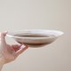 这款口沿壶采用粗糙的红土制成,可以让您享受瓷土特有的粗糙质感和温暖,并塑造成一个带有柔和弯曲边缘的大壶,然后用刷纹图案烘烤。