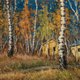 - 秋天是一个美好充满诗意的季节,蔚蓝色的天幕,白灰点的白桦树林,阳光从金黄色的树叶间洒落下来!座落在林间的黄色小屋有如童话般的美景令人着迷!