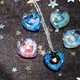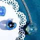 作品外形呈心形琉璃晶石,以不平滑的表面作折射效果。石子内有用上珍贵金银气化(fuming)的技巧作蓝绿色极光般的景像, 仿如石子锁着浪漫的极光夜空,并泛出触及不到的心形蛋白石,深深锁紧你心。
