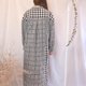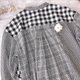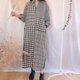 - 使用日本制棉麻混纺素材的三种格纹作拼接 不对称拼接的小立领开襟长板衬衫洋装