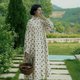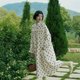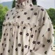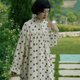 - 燕麥底色+黑花花 木耳花邊立領,修飾脖頸線條領口下方抽褶設計,加大裙擺用料 細膩燈芯絨,懸垂性佳 可敞開當「外套」亦可當「連衣裙」