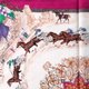 这是一条真正引人注目的手帕,其生动的马术竞赛场景优雅地环绕在整个边缘。