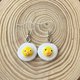 可爱的荷包蛋造型耳环 手工制作,独一无二