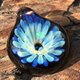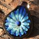 这是一个带有蓝色花朵图案和球形蛋白石的单水滴形吊坠。