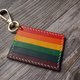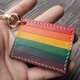 小工于听玫瑰少年时蹦出的灵感,以彩虹旗为设计概念,使用多色皮革依颜色拼出彩虹旗的颜色,依旗帜外观尺寸真实比例缩小,并于将晶片放入其中。
