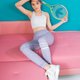 Knee-Striped Leggings is made with soft, stretchy, supportive, and quick-dry Nylon Spandex fabric. Its rubber screen around the left leg makes this piece outstanding and unique. Its soft heather color tone makes it suitable for both sports and casual.
