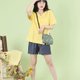 童趣小树用排列的方式呈现简单的视觉效果, 拉低彩度用绿色系深浅叠出可爱的园林, 小红帽与大野狼扮演小园丁, 照顾着这美丽的后花园~ 充满春天气息的色彩, 很好搭配服装又有特色!