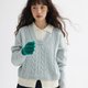 撞色领和绞花大身都是100%美丽诺羊毛材质合股织制