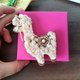 Llama jewelry brooch beaded is embroidered seed beads, Swarovski pearls, sequins and chenille.