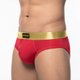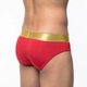 ▲设计特色:本款使用1-1/4寸金色松紧腰带,中央车缝金色限定ATTENT!ON品牌标,搭配三角基本款版型剪裁,全件采纯红色布料车缝,魔力红色与金色腰带实穿又好搭配衣服,适合秋冬色系,绝不退流行的经典设计。