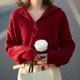 - 新年红色毛衣女复古日系慵懒打底衫小个子针织开衫春装