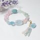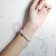严选绿柱石家族所有色系宝石(海蓝宝、摩根石),雕以回纹(吉祥无尽)饰、心(心想事成、心心相映)珠饰、袋(一代佳人、世代书香)型坠饰,宝石色正而浓、晶体净透、水光匀净、无斑、闪星光,彩虹渐层设计,优雅环绕手腕,华美得不言而喻。